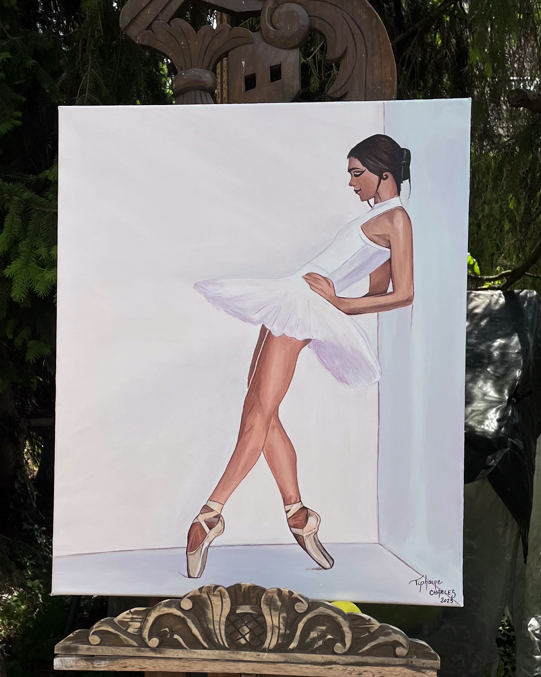 Cette toile rend hommage à la passion de la danse, à l’énergie qui anime le corps et à l’élégance des mouvements. Chaque trait de pinceau met en valeur la fluidité et la force du geste, traduisant la liberté d’expression qu’incarne la danseuse.
